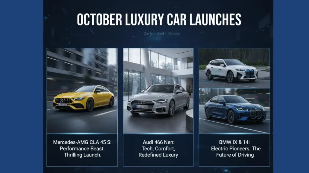 लग्जरी कार सेगमेंट में भी इस अक्टूबर ने कई बड़ी घोषणा की। Mercedes, Audi, BMW जैसे ब्रांड्स ने नए मॉडलों के साथ भारत में अपने पैर मजबूत किए।