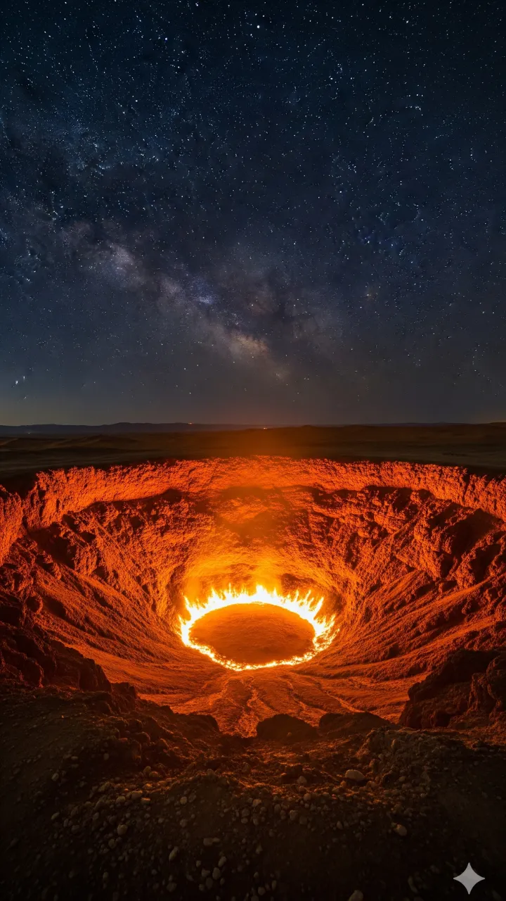 1971 में गैस ड्रिलिंग के बाद बना यह विशाल जलता गड्ढा